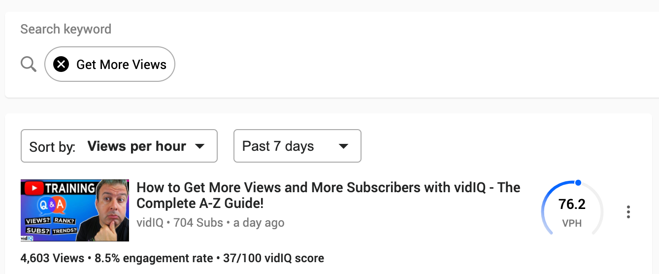 And that’s just what vidIQ’s ‘Most Viewed’ tool does. Search for it in the left-hand column or in the top tab on your main YouTube pages. Our results are based on the videos generating the highest views per hour right now, that’s trending content data in real-time!