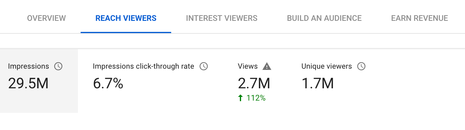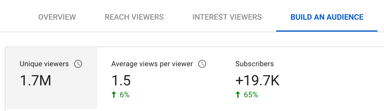 This allows you to understand how many views you get per viewer. You can see this metric under build an audience.
