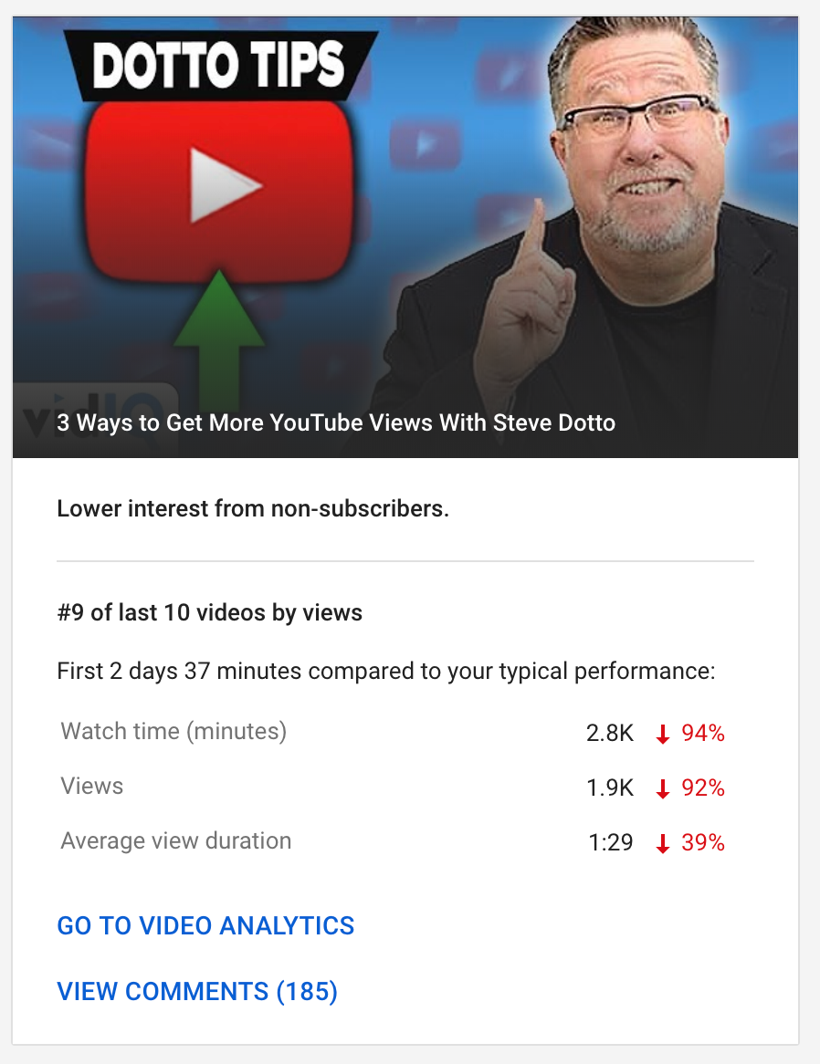 This metric shows how your latest has done compared to other content.