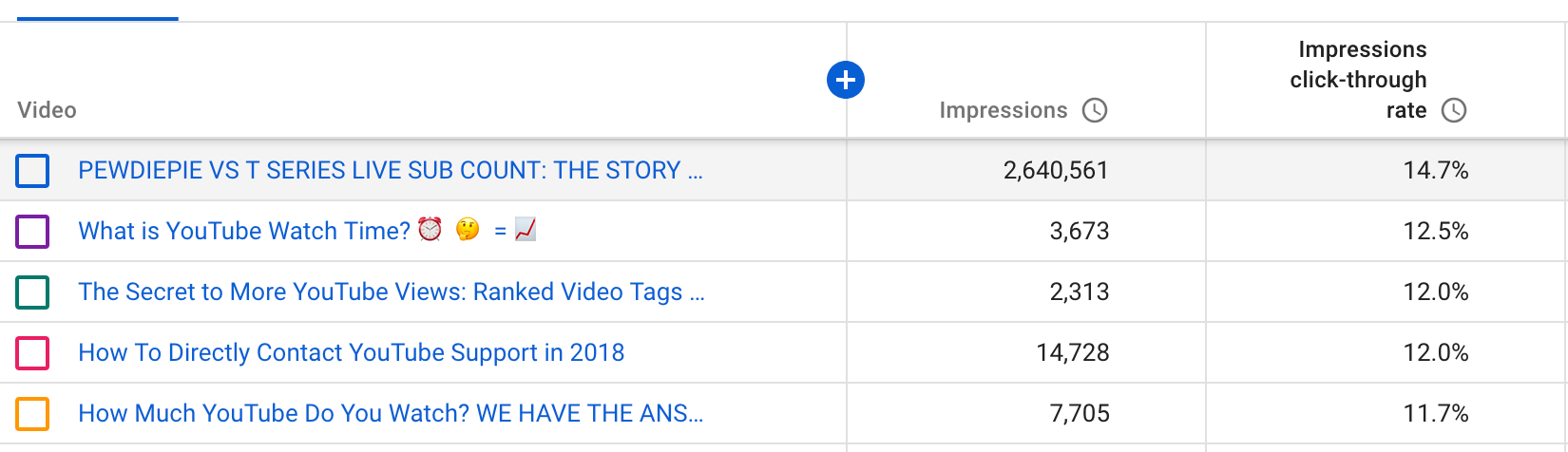 1 Studio Beta Individual video impressions and CTR