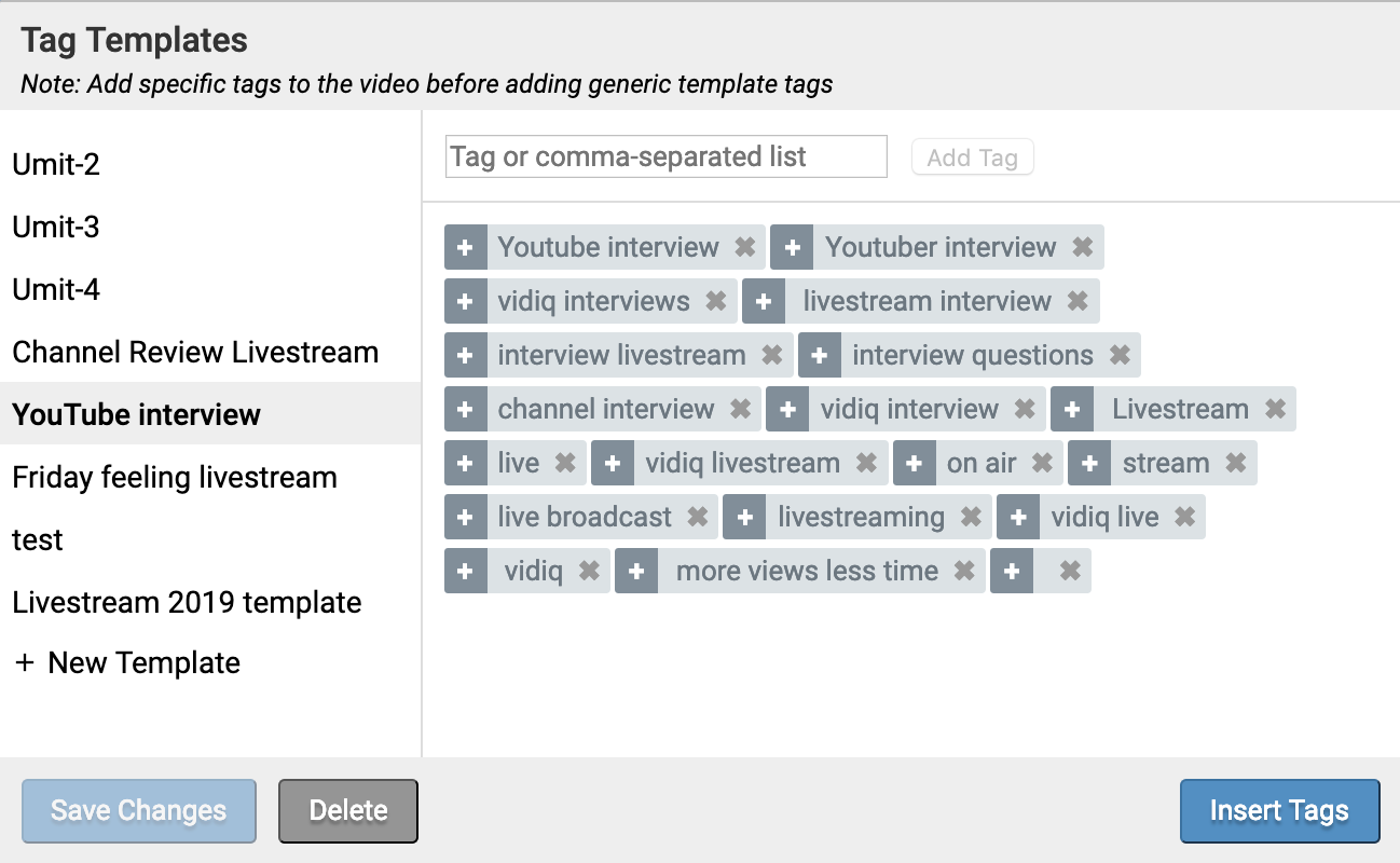 You can create a keyword template based on the core words you might use in a series of videos saving you time.