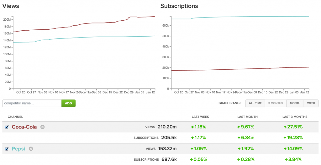 Starting today you’ll be able to track your competitors’ growth on YouTube and see how you stack up against your competition, including views and subscribers by timeframe. This is just the beginning – stay tuned for many more exciting features in the future!