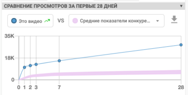 Доступна статистика по первым часам или после 1,2,3 и 28 дней. Уникальная информация, которая поможет соотнести данные своего канала и любого другого.