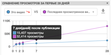 С помощью фирменной утилиты сравнения просмотров вы сможете соотнести скорость просмотров одного видео к любому другому или к каналу в целом.