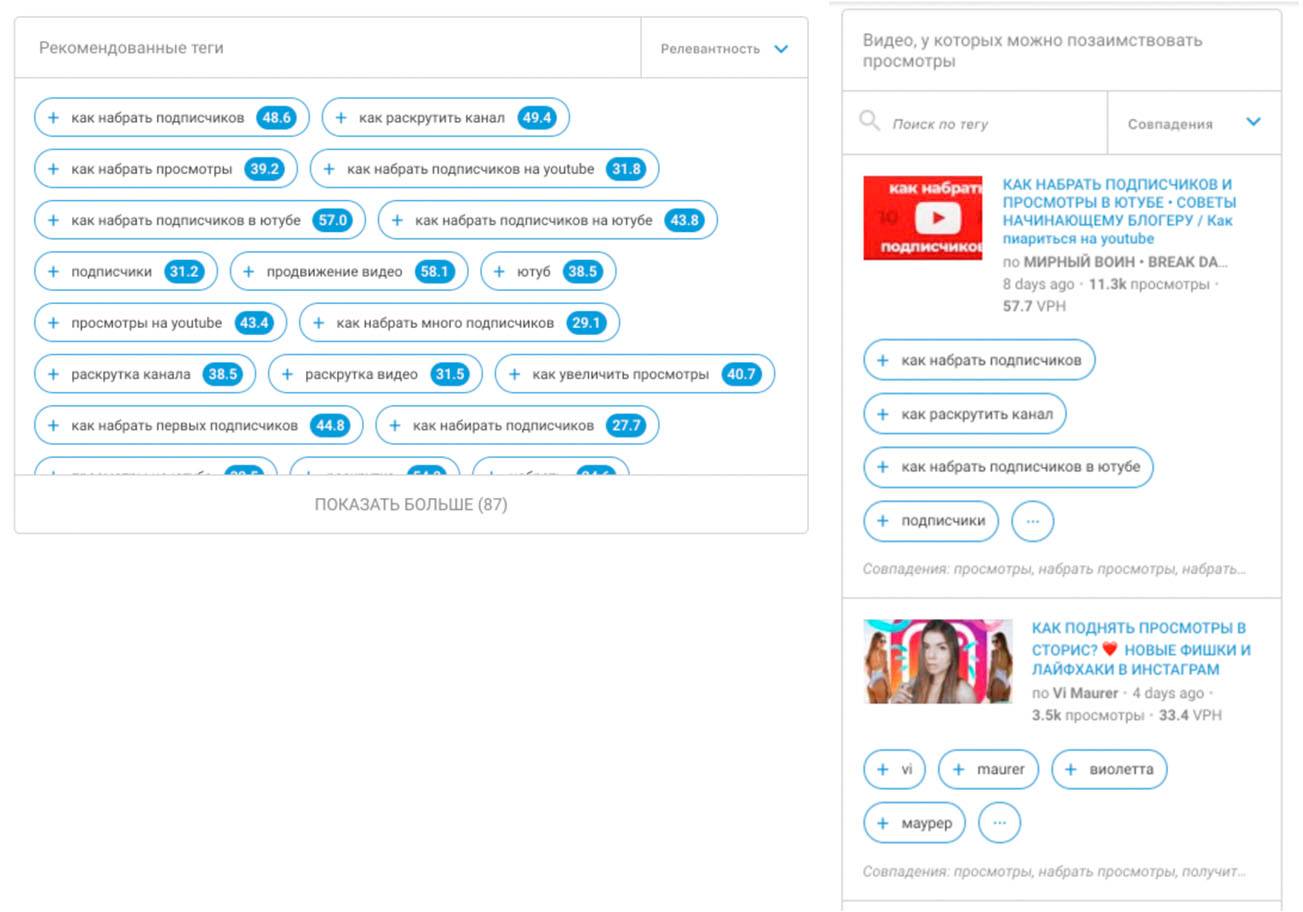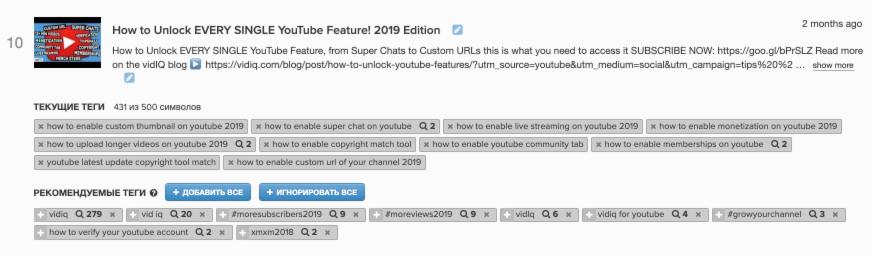 Если вы включите отображение тегов под видео, то всегда будете в курсе того, какие ключевые слова используют ваши конкуренты. Вы можете как скопировать их и использовать для вдохновения при создании новых видео так и выбрать лучшие теги в ручную, и добавить к уже имеющимся видео.