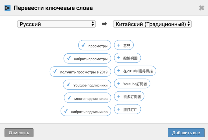Перевод ключевых слов