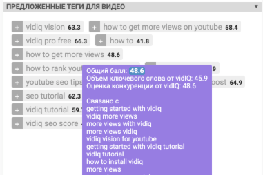 Данная функция рекомендует вам теги, которые вы можете использовать для улучшения поисковых позиций вашего видео.