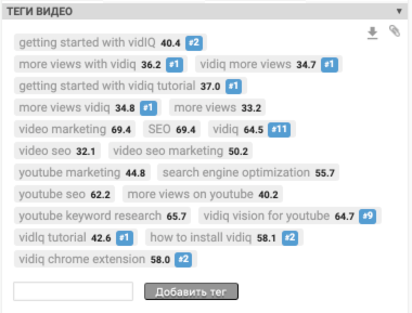 Наша утилита для работы с тегами подскажет сколько ключевых слов вы используете, на каком они месте по поисковым запросам. Вы также можете скопировать все теги и использовать их для исследования или же добавления к другим видео.