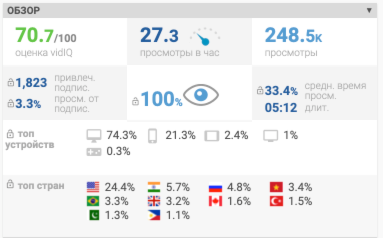 Новая панель статистики vidIQ была усовершенствована, и теперь предлагает вам еще больше информации о видео. Более быстрая загрузка и множество инструментов, которые помогут вам изучить видео со всех сторон.