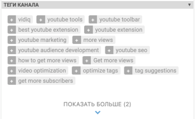 Данная функция подскажет какие ключевые слова указал владелец канала в секции теги канала.