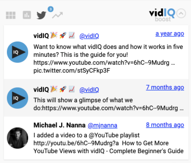 Данная функция отобразит в какиих твитах содержится ссылка на ваше видео.