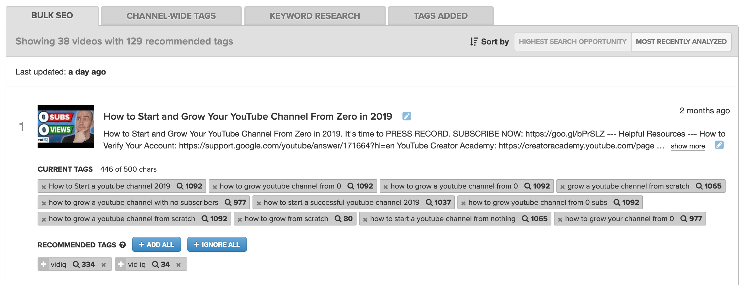 Web Suite'imiz, toplu SEO, kanal geniş etiketleri, anahtar kelime araştırması ve kimin hangi etiketleri eklediği gib güçlü video SEO araçlarına sahiptir.
