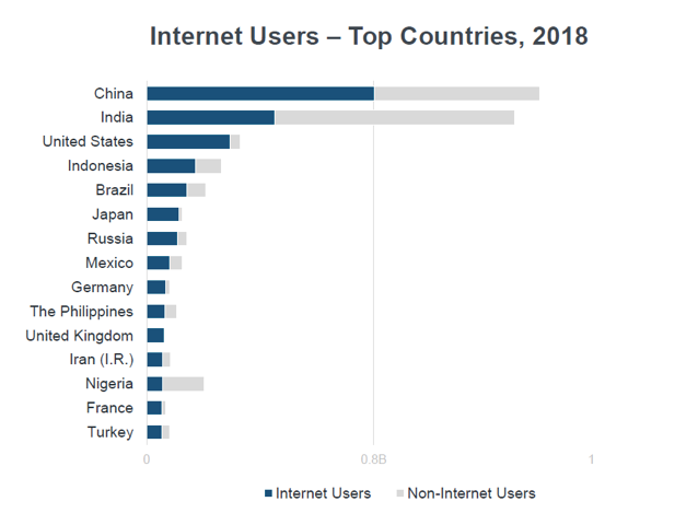 The chart below shows the percentage of Internet vs Non-Internet uses across a range of countries, but as the barriers to entry fall with each advance in technology, the potential for YouTubers to develop an audience in countries like India, Indonesia, Brazil, The Philippines, and Nigeria has never been greater.