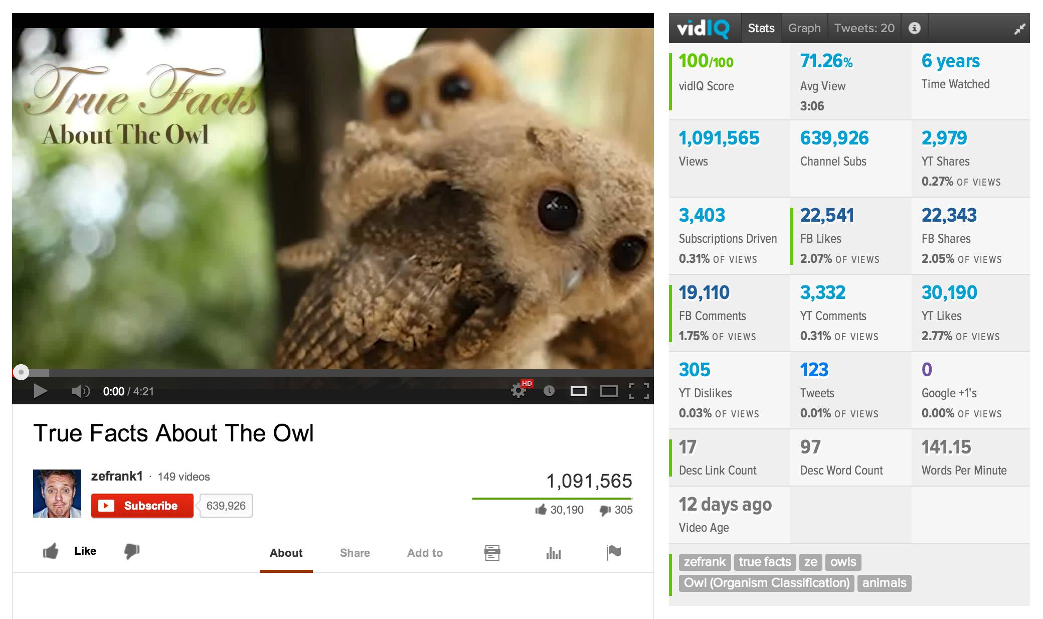 YouTube recently started hiding video tags. We surface them. This is extremely valuable for brands (if I’m Pepsi I probably want to see what Coca Cola is tagging their videos with).